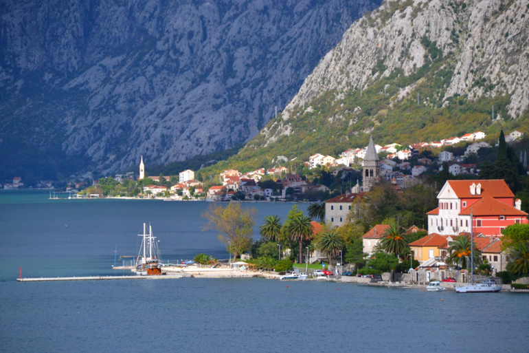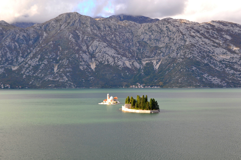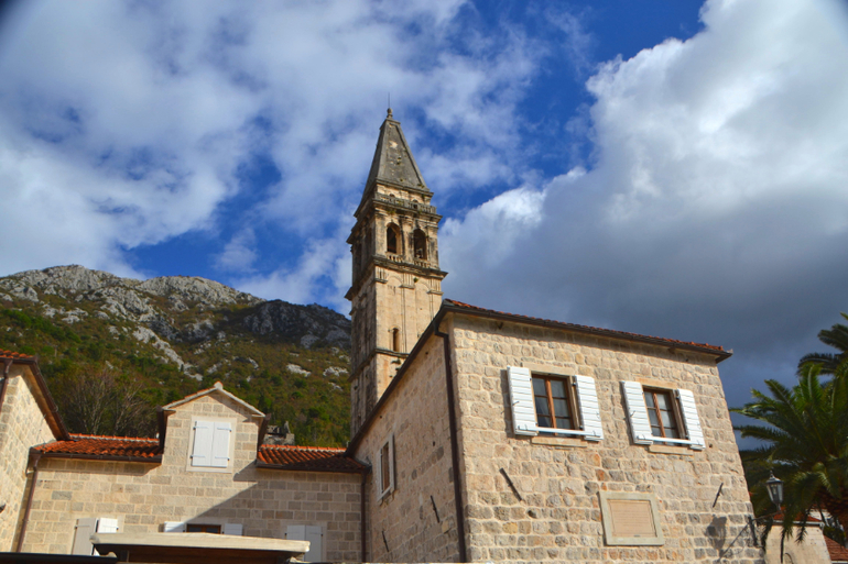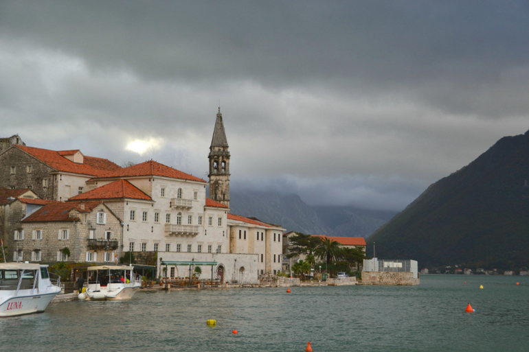 С уютной набережной городка открывается фантастический вид на Боко-Которскую бухту, на остров Святого Георгия и рукотворный остров, где была построена церковь Божьей Матери.