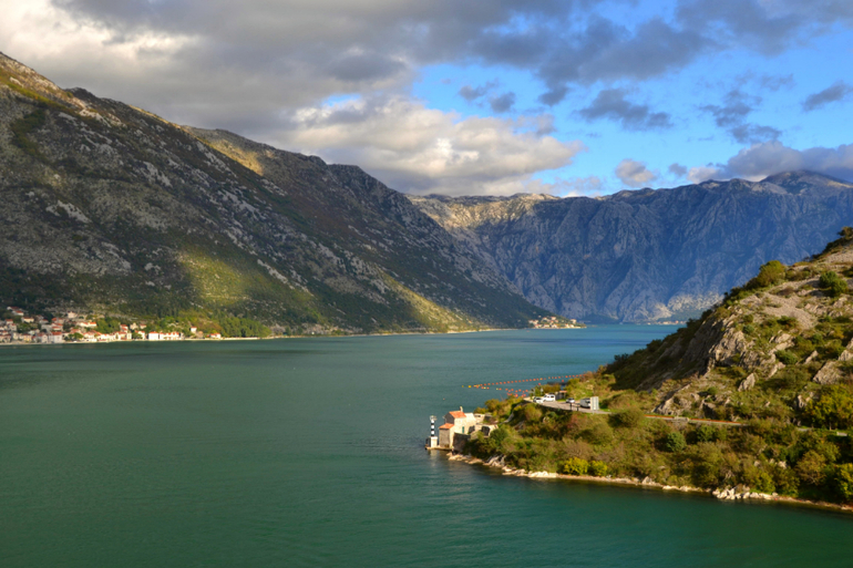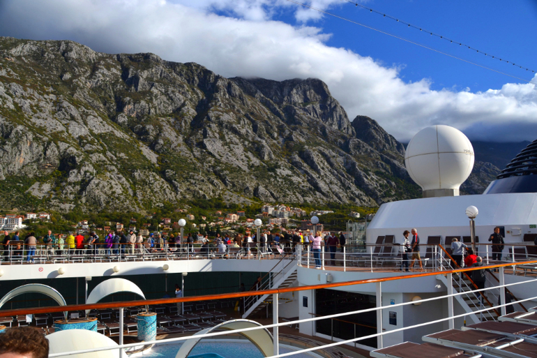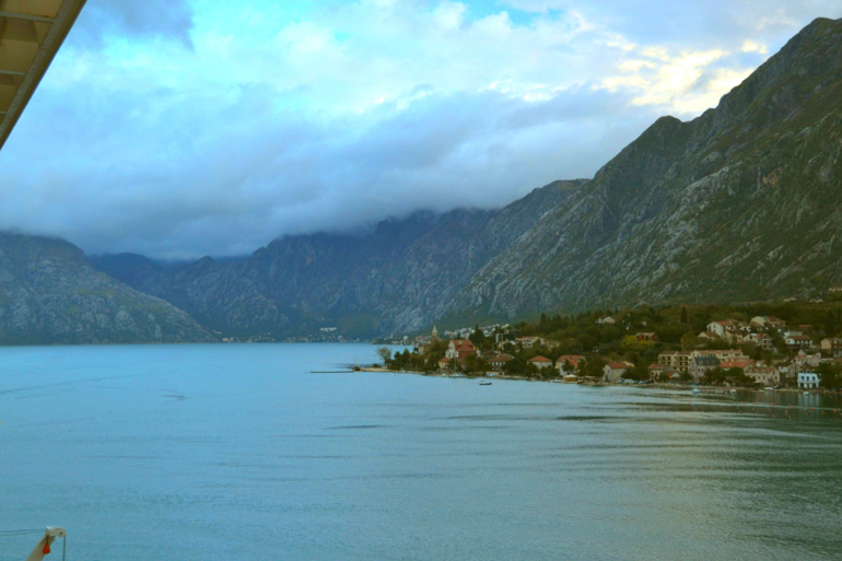 Рано утром я вышла на балкон и увидела горы. Корабль плыл по Которской бухте к городу.