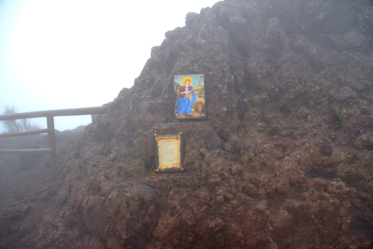 Почти на самой вершине кратера, на туфе стоит икона с изображением Девы Марии, которую можно попросить о помощи и защите.