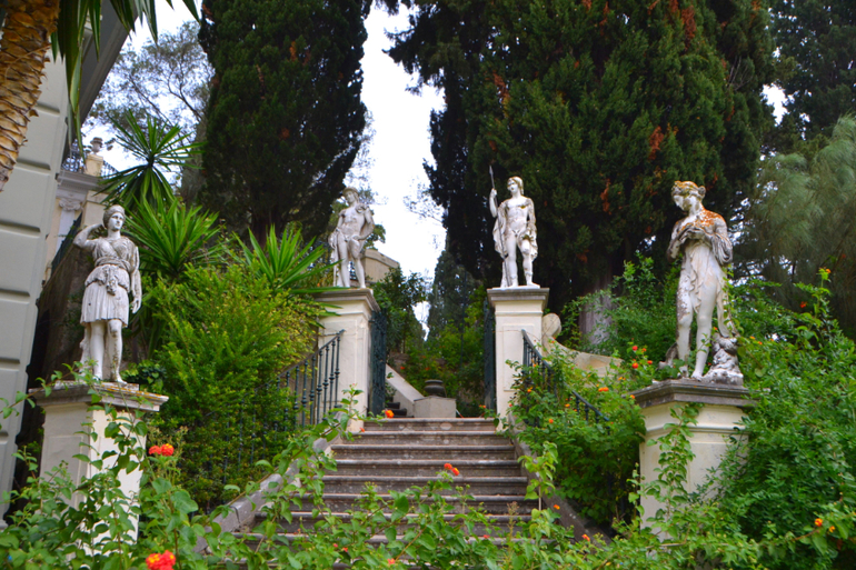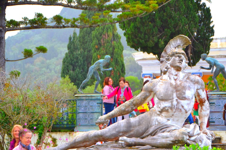 На парковой территории дворца Ахиллеона находится множество скульптур древнегреческих богов.