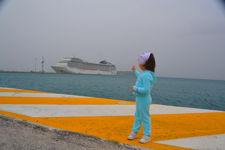 Вдалеке нас ждал белый лайнер, но встал второй вопрос - как до него добраться, тк после забега по Риму сил идти до него не было, а шаттл не подъезжал. В итоге, нашли сотрудника порта, и он связался с водителем, и нас отвезли на регистрацию. На большинстве форумов, которые я читала перед поездкой, писали, что надо быть за 2 часа до отправления, но по факту можно спокойно приехать за час, а зарегистрированным гостям надо быть на борту судна за 30 мин до отплытия. Мы сдали багаж, прошли регистрацию на 10 минут и поднялись в нашу каюту. Самое сложное было позади: рейс не задержали, на поезд успели, корабль нашли, ребенок жив и здоров