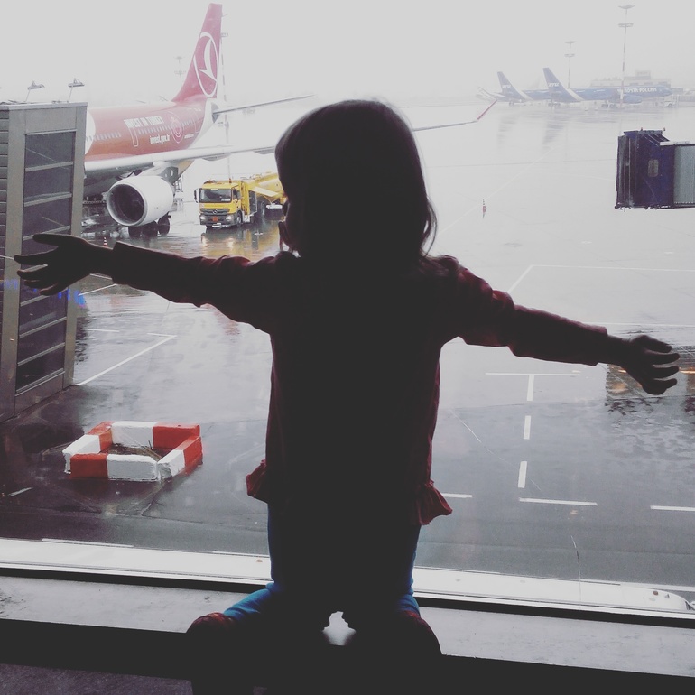 Сам полёт хорошо хорошо. Алиса проспала часа 1,5-2 из 3 часов полета, потом играли и просто глазели. Последние полчаса полёта была сильная турбулентность, я разнервничалась (я ж до жути боюсь летать!!), давление подскачило, я опять красная. В общем перевела весь обед...завтрак...и видимо вчерашний ужин :-((