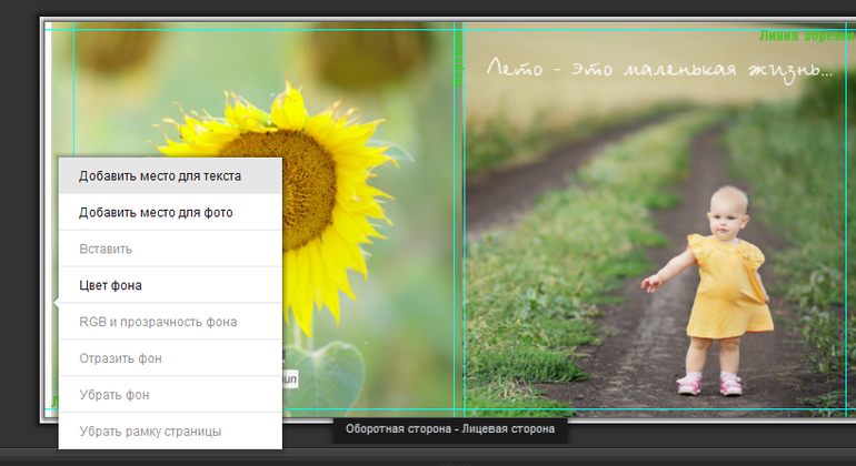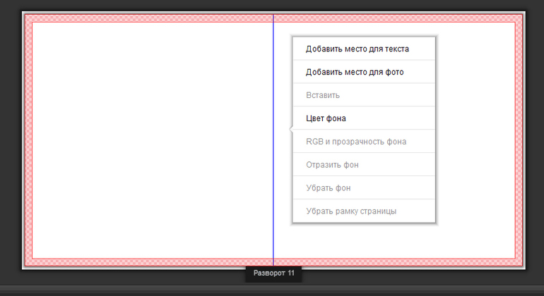Сначала определим "регионы" для фотографий. Это места, где будут располагаться фоточки. Щелкаем правой кнопкой мыши по пустой пока еще странице и выбираем пункт "добавить место для фото". Добавляем столько мест для фото, сколько фотографий вы планируете разместить на странице. У меня будет 4 фотографии.