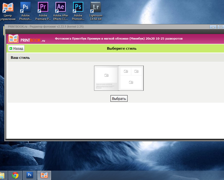 Итак, вы выбрали тип книги, который хотите создать. Я буду приводить пример на фотокниге принтбук премимум в твердой персональной обложке 20х20 см мой любимый размер!!! Выбираем стиль. Если в центре управления вы не устанавливали никаких стилей, то и выбрать будет не из чего. Но оно нам и не надо. Книгу лучше содавать по своим правилам!) Поэтому выбираем "ваш стиль".