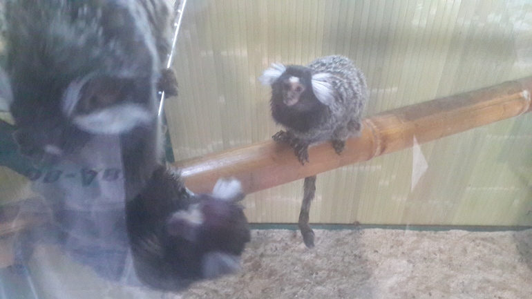 Когда мы пришли никого не было. Обезьянки сидят в клетках,которые больше шкафы напоминают. Внутри минимализм донельзя,в лучшем случае домик и дае полочки. Миски для воды даже не у всех есть,очень грязно. Вместо стекла похоже пластик - исцарапанный и грязный.Обезьянок около 15 штук, даже птицы и несколько змей. Выглядят не очень. У одной игрунки нет хвоста, многие в ошейниках. Короче не рекомендую от слова совсем.