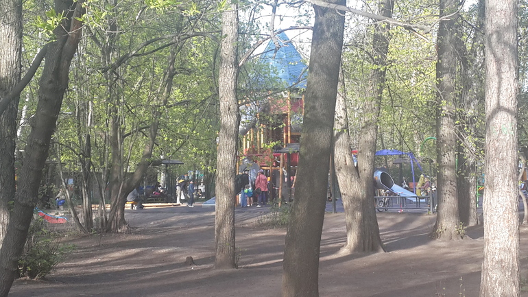 Ну и площадки здесь неплохие, но на мой вкус проигрывают с Перовским парком. Не такие интересные и людей порядком больше. Рядышком беличьи домики и доска для рисования мелом