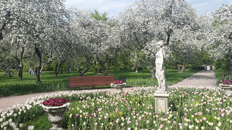 ДосугВ этом парке я не была давно. Точнее настолько давно, что получилось как в первый раз ))). А сумашедшее буйство цветущих яблонь просто вскружило голову. Хотелось снять все вокруг. Вот эту статую я засняла наверно раз 15 с разных ракурсов и с разным освещением.