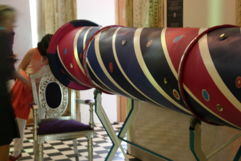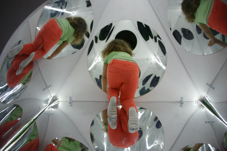 Далее Зеркальный тоннель, где нас должен встретить самый большой калейдоскоп (оказывается его изобрели незадолго до написания книги и он был крайне популярен в то время). Однако и тут грусть. Маленький ребёнок самостоятельно не может ни заглянуть (нужна помощь мамы - на стул ногами не встанешь), ни посмотреть - с другой стороны сидит сотрудник, который на своё усмотрение вращает трубу.