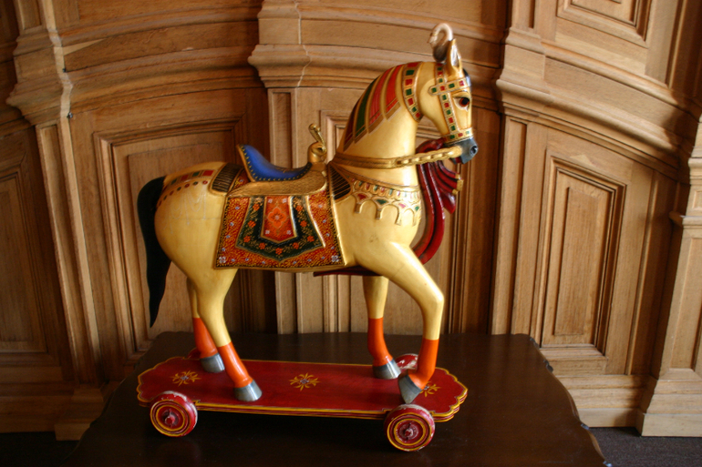 Очень красивая комната, но смотреть особо нечего. Есть два трона, на которых можно сфотографироваться с короной из папье-маше, скелет динозавра и лошадь.