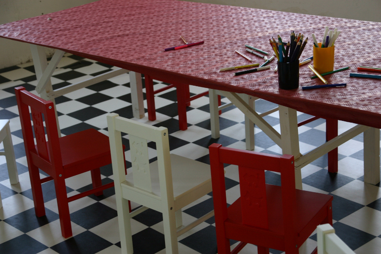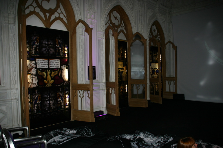 О том что выставка для детей напоминает только Домик, он же по сути "исчезающий сад", так как внутри наполнен цветами с подсветкой и зеркалами. Всё остальное возможно оценят дети постарше, но не малыши. Это и напечатанные на пленке витражи в дверных проёмах, и демонстрируемый фильм с первыми иллюстрациями к книге. Наверно после первых отзывов здесь появились мягкие пуфы для просмотра. Мамы опять же могут полюбоваться окнами и интерьером, к выставке отношения не имеющими. Больше ничего примечательного в зале нет.