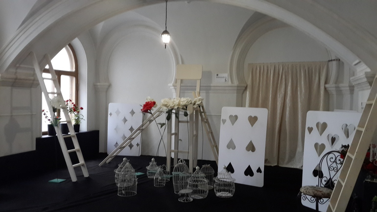 Из этого же зала через маленькую дверь можно попасть в дом белого кролика - помещение над лестницей.