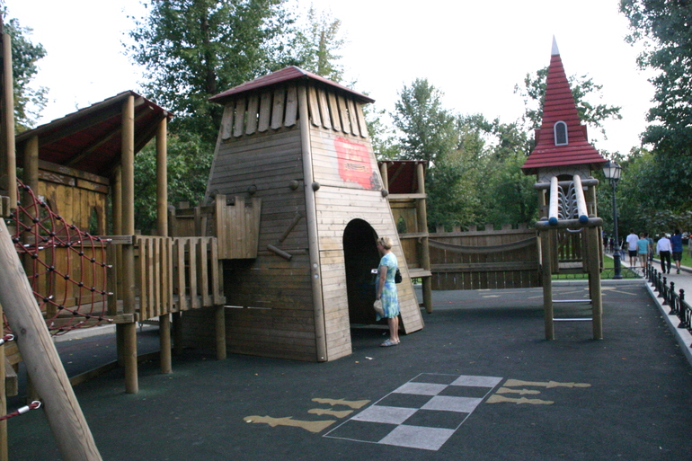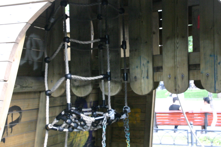 ДосугВчера пробегали мимо и зашли попробовать на разрекламированную площадку. Ну что могу сказать - это явно площадка не для моего ребёнка, пока. Ей там было страшновато, впрочем не только ей - ещё девочка призналась что ей там не по себе. Ну а мальчишкам раздолье - лазай, исследуй. Так что если ребёнок не отличается излишней смелостью - в Москве много других площадок.