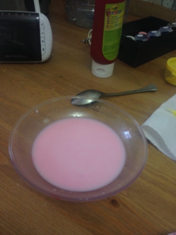 У нас только розовое молоко для фото)одного ребенка пока страшно оставлять с краской