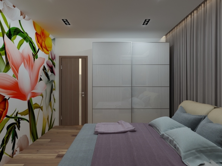 Красота! Обои для меня ярковаты, а мама, увидев их, сказала - класс!))) В целом заманчиво выглядит. Я б конечно между шкафом и кроватью тумбочку какую-нить впихнула и источник света типа бра, ибо люблю почитать на ночь глядя)) Вы и другие ББ-шеки меня убедили, что панорамное окно в спальне - это круто.Я иначе уже и не вижу)) Правда, маленький ворчун в голове пока протестует и говорит, муж будет против))) В нашей реальности пейзаж из окна немного другой и комната будет поменьше. Если спальне отдать половину большой комнаты, то спальня выйдет около 9-10 м2. Мне кажется, будет чуть компактнее. Спасибо за идею. В голове хоть немного стало устаканиваться,а то прям паника-паника: что делать из голой коробки..