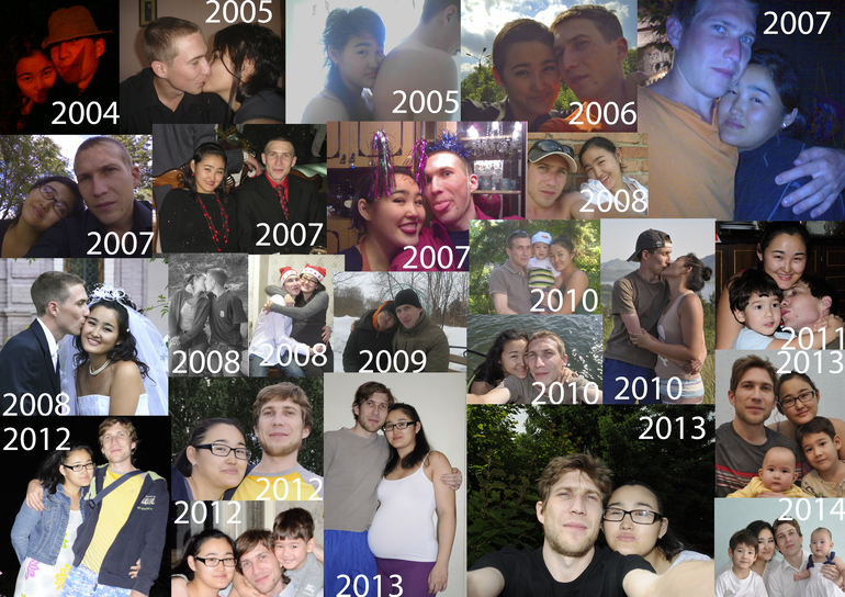 ...он видел меня в весе от 40 кг до сегодняшнего (о ужас) 70 кг. Любит меня любую)))