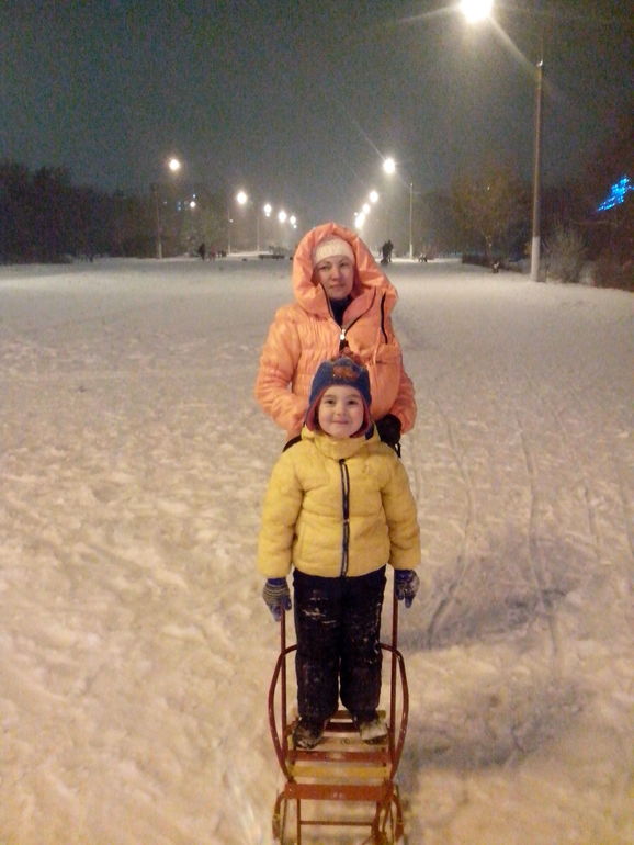 Сегодня погода хорошая. Гуляли два раза. Попросила папу сфотографировать нас. А то и правда меня в кадре нет никогда))) Вот так мы каждый день гуляем. Сегодня достали санки, папа катал сына