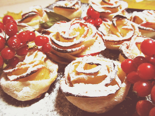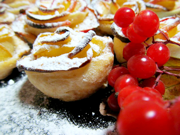 Рецепт я здесь писать не буду, но если вы вдруг его еще не встречали - наберите в поисковике "Розочки из слоенного теста" и будем вам вкусное щастье!)))