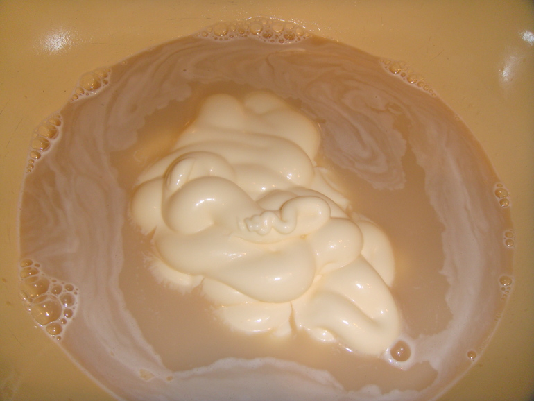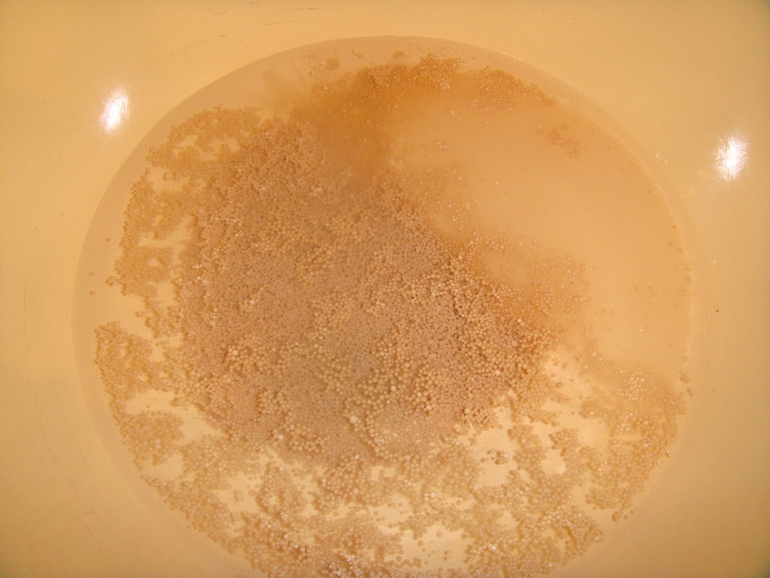В стакане теплой воды растворить 1 ст.л. сухих дрожжей, 2 ст.л. сахара, 1 ч.л. соли (без горки):