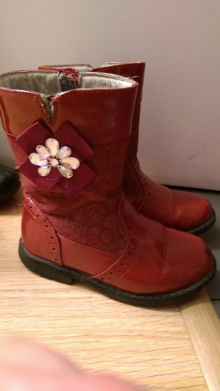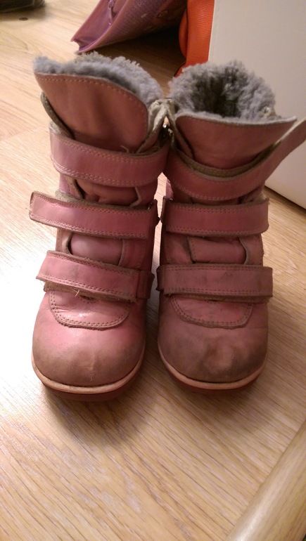 Сапожки размер 27 кожа на коже экв.2000 на тонкую ножку, смотрятся шикарно. На мыске есть царапинки, при носке не видно