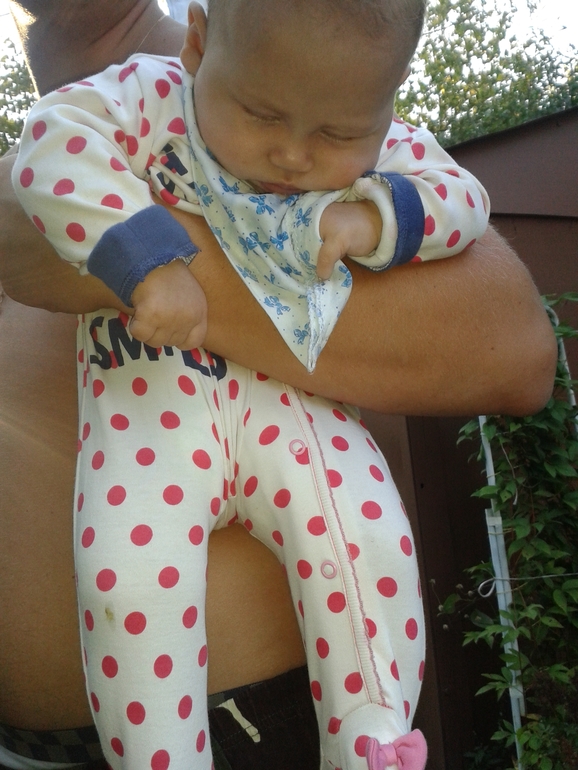 А еще вечером папка таскал её на руках... и она вырубилась)))