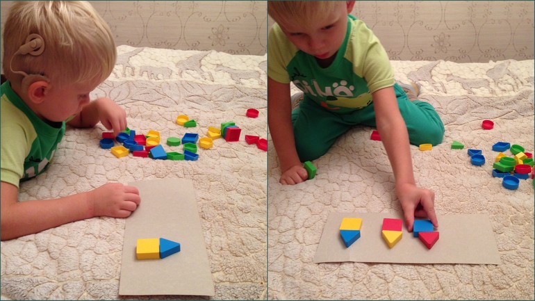 Наши занятия: геометрические фигуры, собирание по образцу, цвета далеко-близко, большой-маленький, т