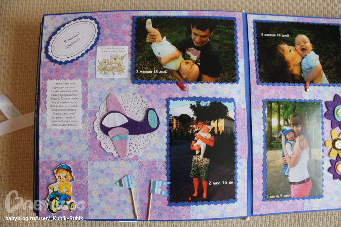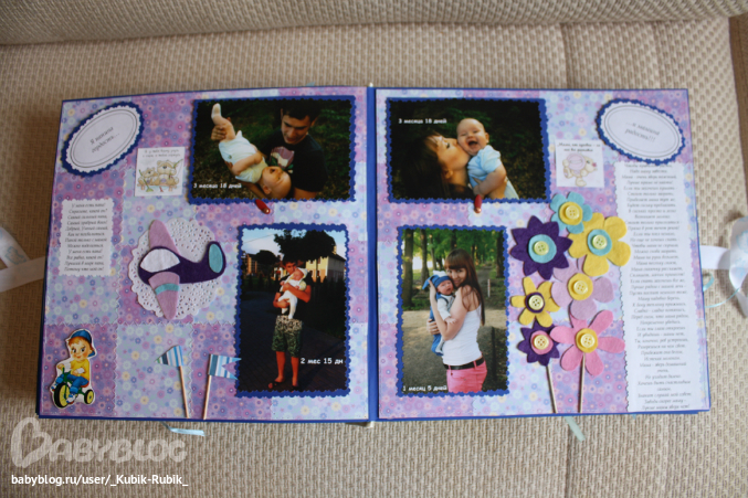 Попала на этот сайт случайно, когда набрала в поиске "Альбом для малыша"... Я даже не ожидала увидеть красату. Сначала я хотела приобрести такой альбомчик, но чем больше я листала ваши дневники, тем больше возгаралась во мне мечта смастерить такой же самой!!! Вдохновившись вашими альбомчиками я начала творить....