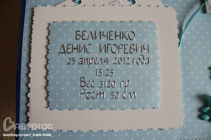 Дорогие девочки! Наконец-то я сделала альбомчик для своего сыночка Дениски! Это моя самая первая работа и очень много идей я брала у Вас, дорогие мастерицы!!! Но не обижайтесь - делала альбом для себя и впервые!!! Буду весьма признательна, если вы посмотрите, и укажите на недостатки.