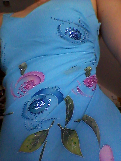 Одевала всего пару раз. Из легчайшей ткани. Шелк 100%.На подкладке,не просвечивает. Сзади по спине бретельки буквой х. На цветах вышивка бисером и паетками. Есть пара маленьких незаметных пятнышек. Мне оч.жаль с ним расставаться,но я в него больше не влезаю(( Шали к нему больше уже нет. Зато могу подарить сумочку к нему,как на фото и босоножки 38р-ра если подойдут.))