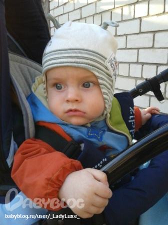 С приходом тепла какого никакого мы стали гулять чаще и дольше и нам это очень нравится! разглядывает все вокруг, вовсю борется со сном, кушает на улице, в общем, наверно, все как у всех) И наш новый прикидик)))