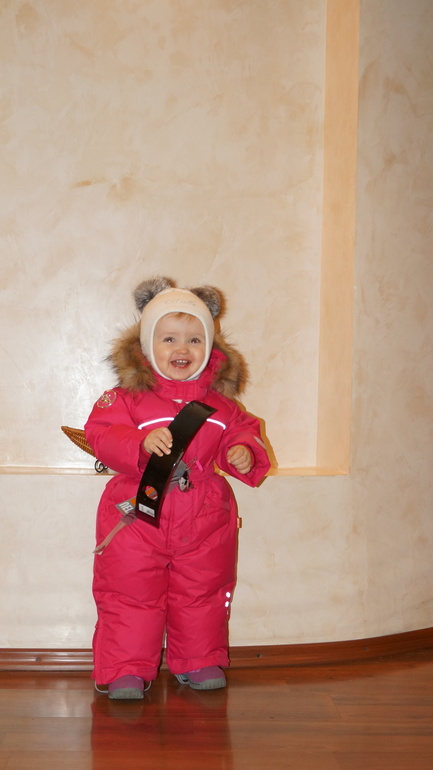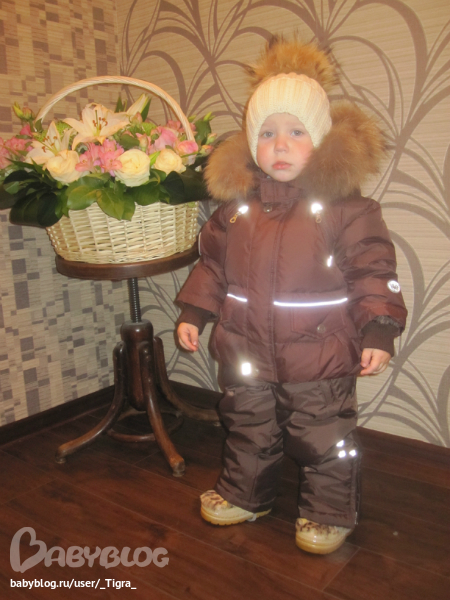 Наш нежно любимый комбезик.На фото дочери 3 года, размер 98. Но ка ни странно хватило на 2 зимы.В этом году очень очень ждем новый комбезик.Ботиночки уже купили)))
