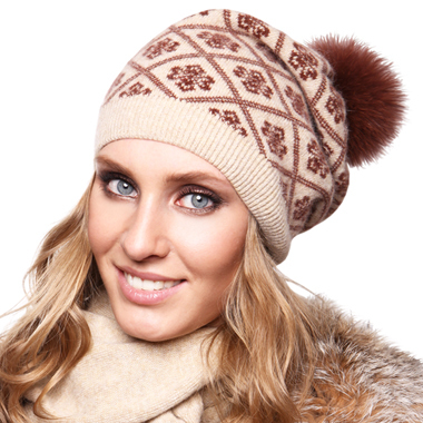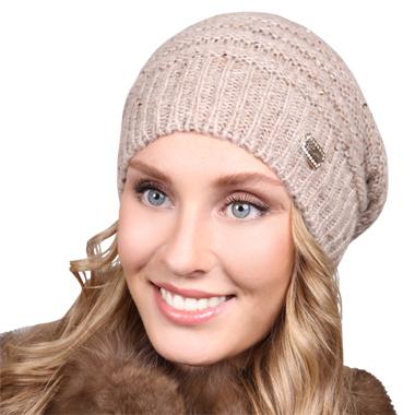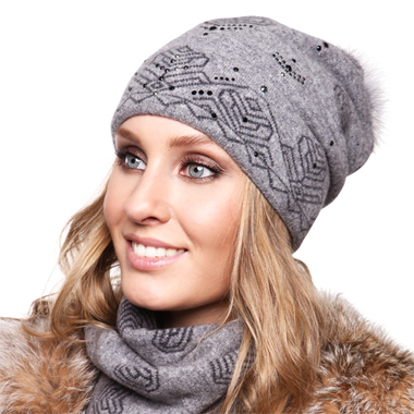 № 20. Шапка Эдисса/12368 со стразами на снежинках и Натур пумпоном.