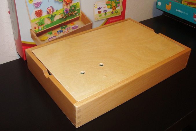 Внутри коробки аккуратный деревянный ящик с двумя загадочными дырками в крышке.