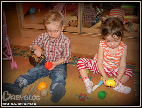 у нас тоже овощами, которые резать нужно хорошо играет. Вообще любит разные мальнькие фигурки - сортер с животными мелкими, машинки, которые нужно нанизывать на веревочку. Сейчас стала кубиками хорошо заниматься и из Лего строить. Магнитами и наклейками охотно играет. Есть и конструктор магнитный - тоже занимается им. Машины, автобусы, вертолет нравятся. Ну и книжки.