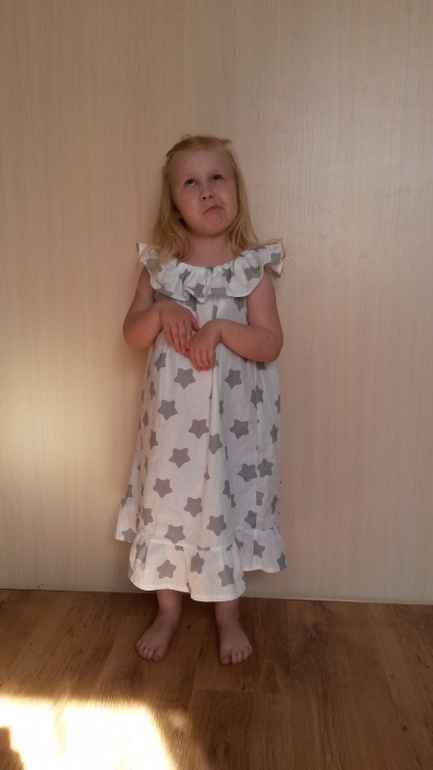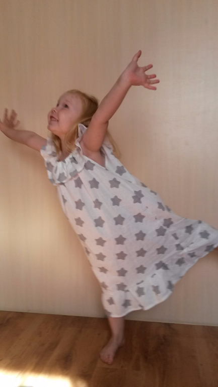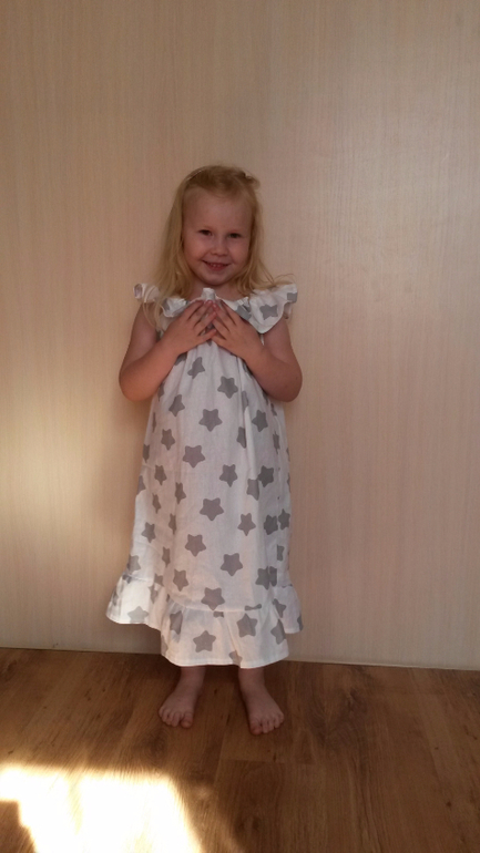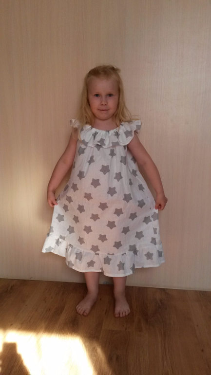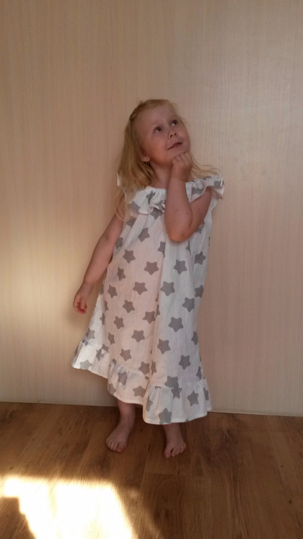 дочка уехала гостить у бабе Тане и я осталась ночевать одна, а от скуки я шью))))) и вот сшила для нее быстренько платишко))))