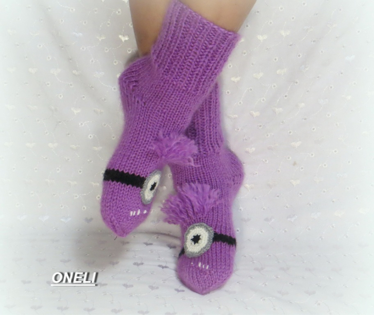 Теплые и забавные носки и героем известного мультфильма порадуют вашего ребенка как мальчика, так и девочку. Отличный подарок. На длину стопы 16-18см. Пряжа Nako Alaska. Цена 400руб + пересылка