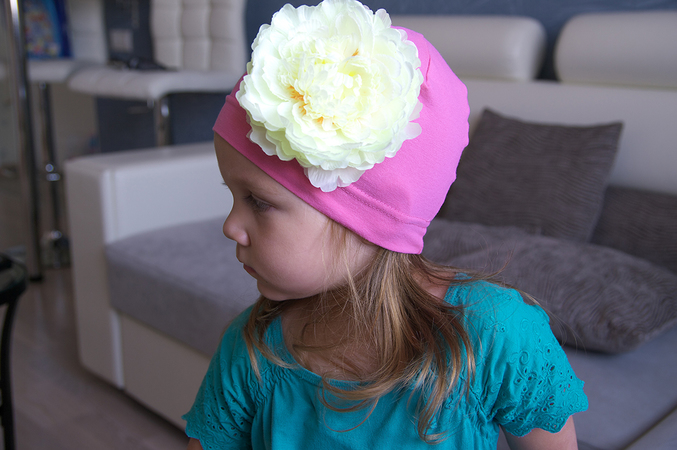 3) шапочка Пион, розовая с белым цветком, размер S