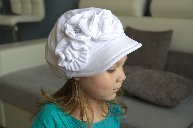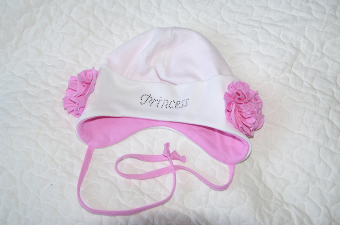5) шапочка Принцесса, цвет белый с розовыми цветочками, размер S