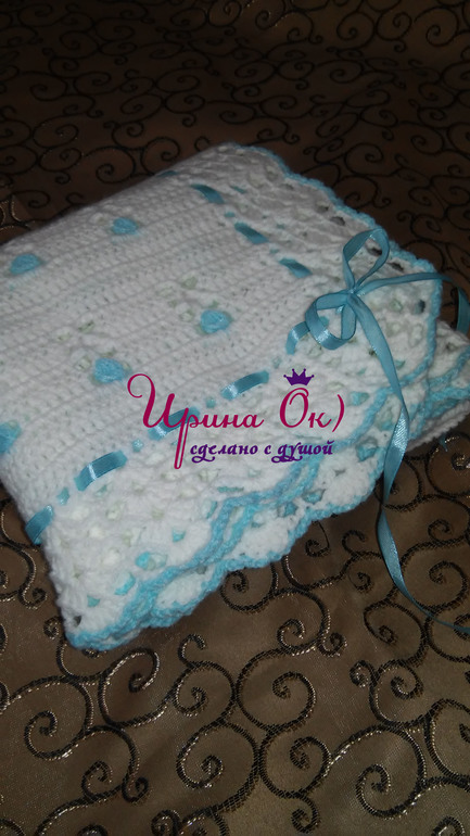 Плед крючком для новрожденного "Голубые тюльпаны"...