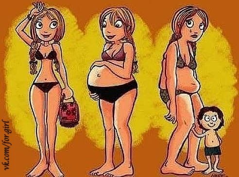 Не все зависит от женщины. :( У подруги после второго(дети в год разницы) ребенка огромный живот отстался. А все дело в том, что когда вторым была Б и на сроке 30 недель мышцы порвались. Теперь там типо дырки и огромнейший живот. К сожалению только лет через 5-7 можно будет что-то делать и все равно до конца это уже не убрать. :(((