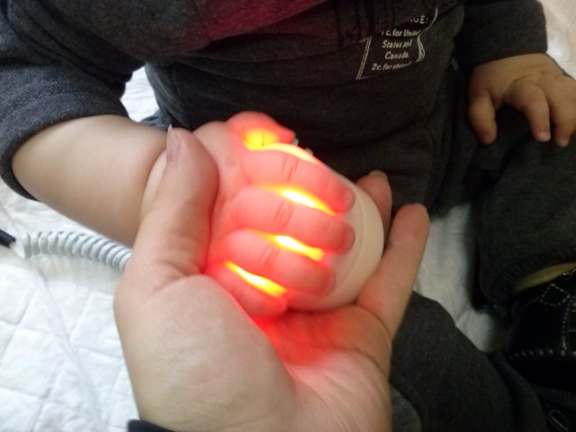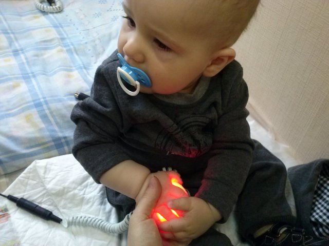 Во так мы разными лампами греем ручки,ножки,спинку,потом уже идем на массаж и электрофорез,последнее фото как раз с него,сегодня вообще все процедуры отлично прошли,не ныл совсем