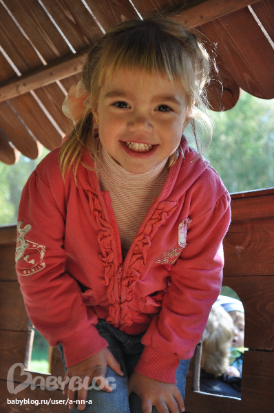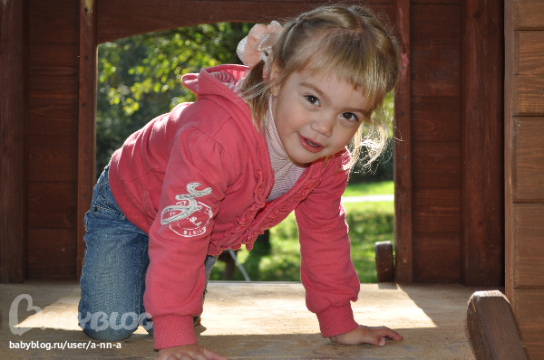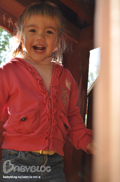 У нас в парке ,еще летом,построили деревянную крепость.Дарене очень нравится на ней играть в прятки-догонялки.Носится с хитрыми глазами и кричит НЕ ДОГОНИШЬ=))