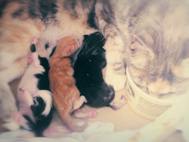 Милые девочки!Внезапно стала я обладательницей кошки и трех милейших котят.