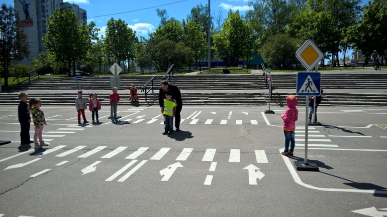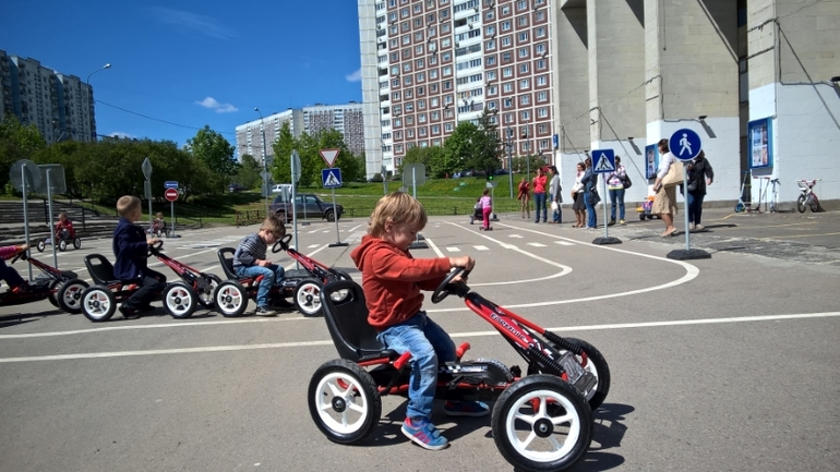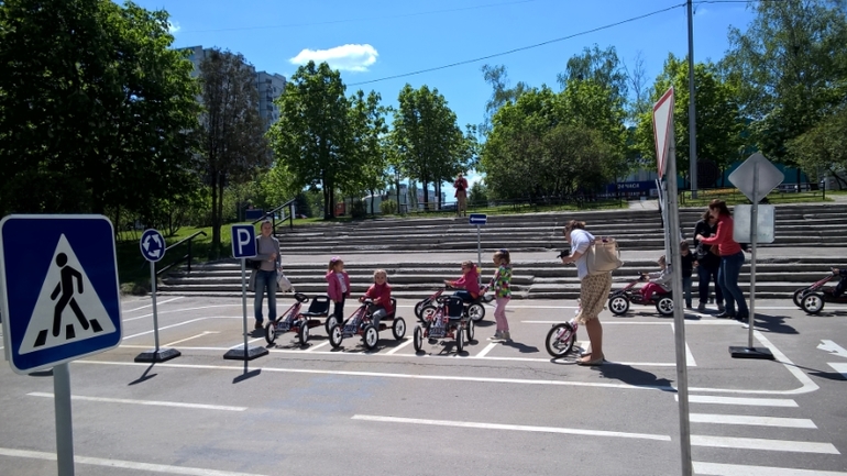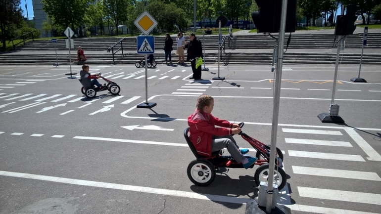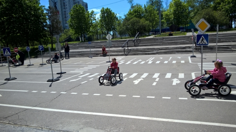 Применили знания на практике, на предоставленных машинках. На отдельно отведенной площадке.