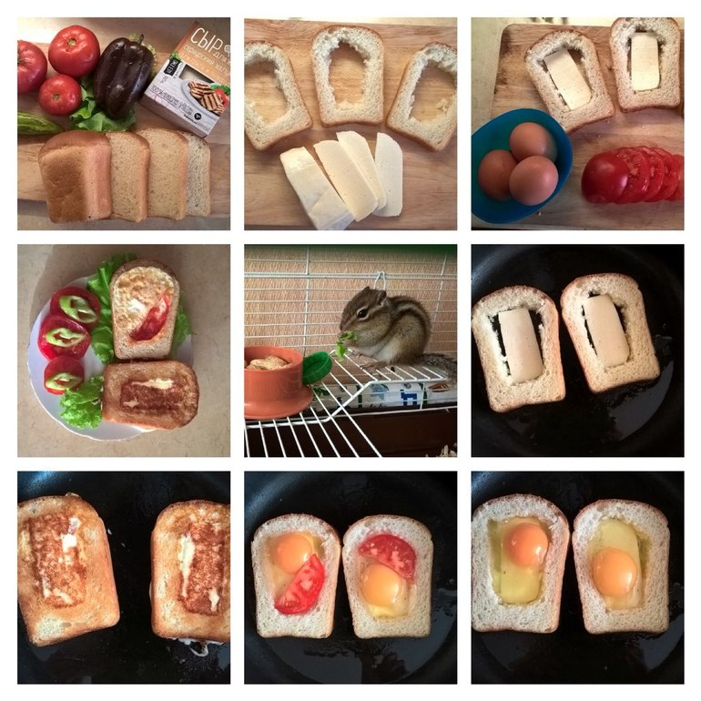 Сегодня у нас не просто яичница, она в хрустящем хлебушке с овощами прямо с бабушкиной грядки и очередным открытием для нашей семьи