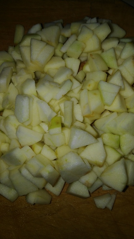 У яблок удаляем сердцевину и счищаем кожуру. Очищенные яблоки режем на небольшие кубики.