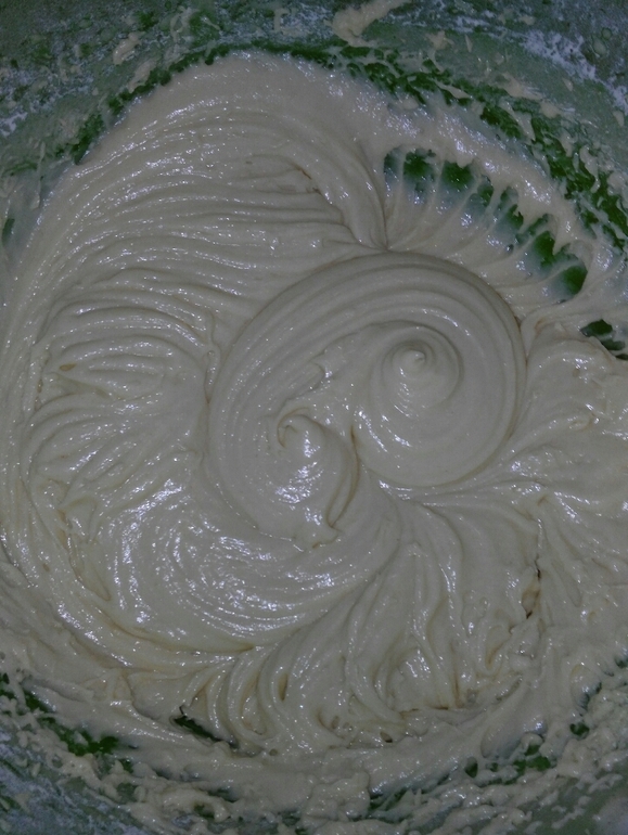 Яйца взбиваем с сахаром и ванилином. Добавляем растопленное, но не горячее масло или маргарин, гашёную соду, затем муку и замешиваем ложкой тесто. Если вместо соды у вас имеется разрыхлитель, то его следует перемешать с мукой.