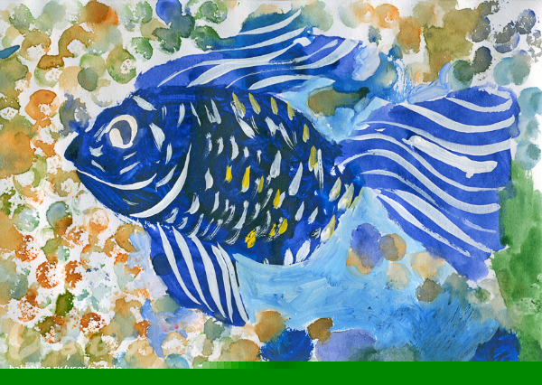 Тоже результат совместного творчества. Изначально и рисовалась акварелью рыба, но не совсем удачно. Добавили деталей - стало удачно.