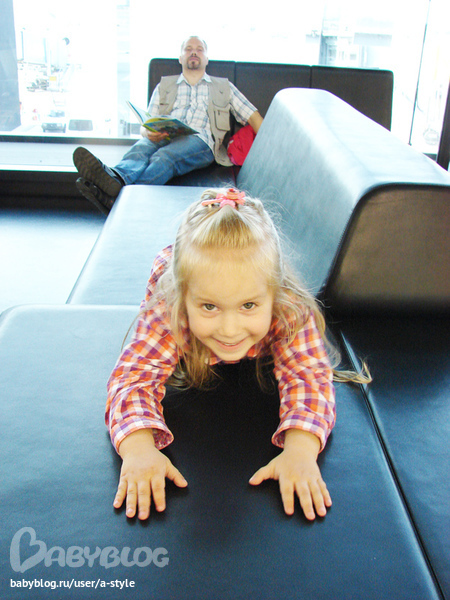 Из минусов - нет детских комнат. Есть зоны для игр, но за 6 часов я не увидела ни одного ребенка, которого бы всерьез заинтересовали эти интерактивные панно. Карину вообще нисколько не привлекли. Еще из минусов - достаточно высокие цены в магазинах и кафе.