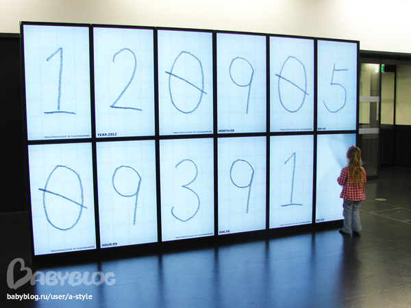 Понравились часы. вверху дата: 12 год, 09 месяц, 05 число. Внизу время. Циферки постоянно стирает стерочкой рука и пишет карандашиком новые.