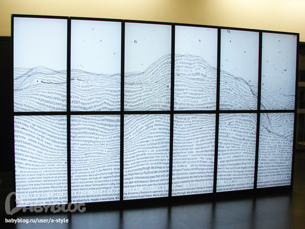 Здание светлое, соременное, напичканное электроникой. Вот такие панно с падающими и плавающими буквами можно было встретить повсюду.